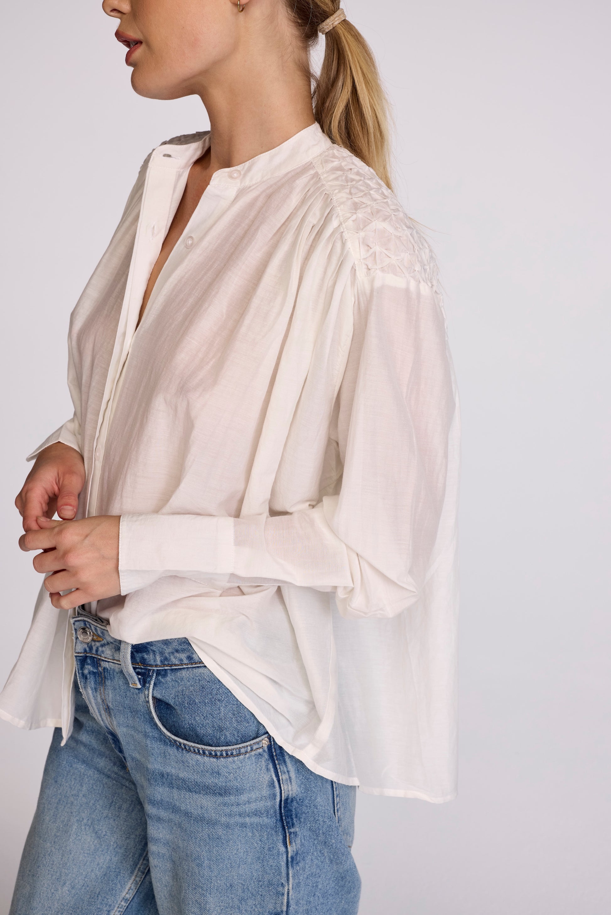 We've redefined the everyday shirt with a sophisticated twist. The back placket features a diamond pin tuck, adding a touch of refinement that takes this beyond your average button-up. Crafted from our luxurious cotton-silk blend, it offers a light, breathable feel while exuding effortless elegance.
