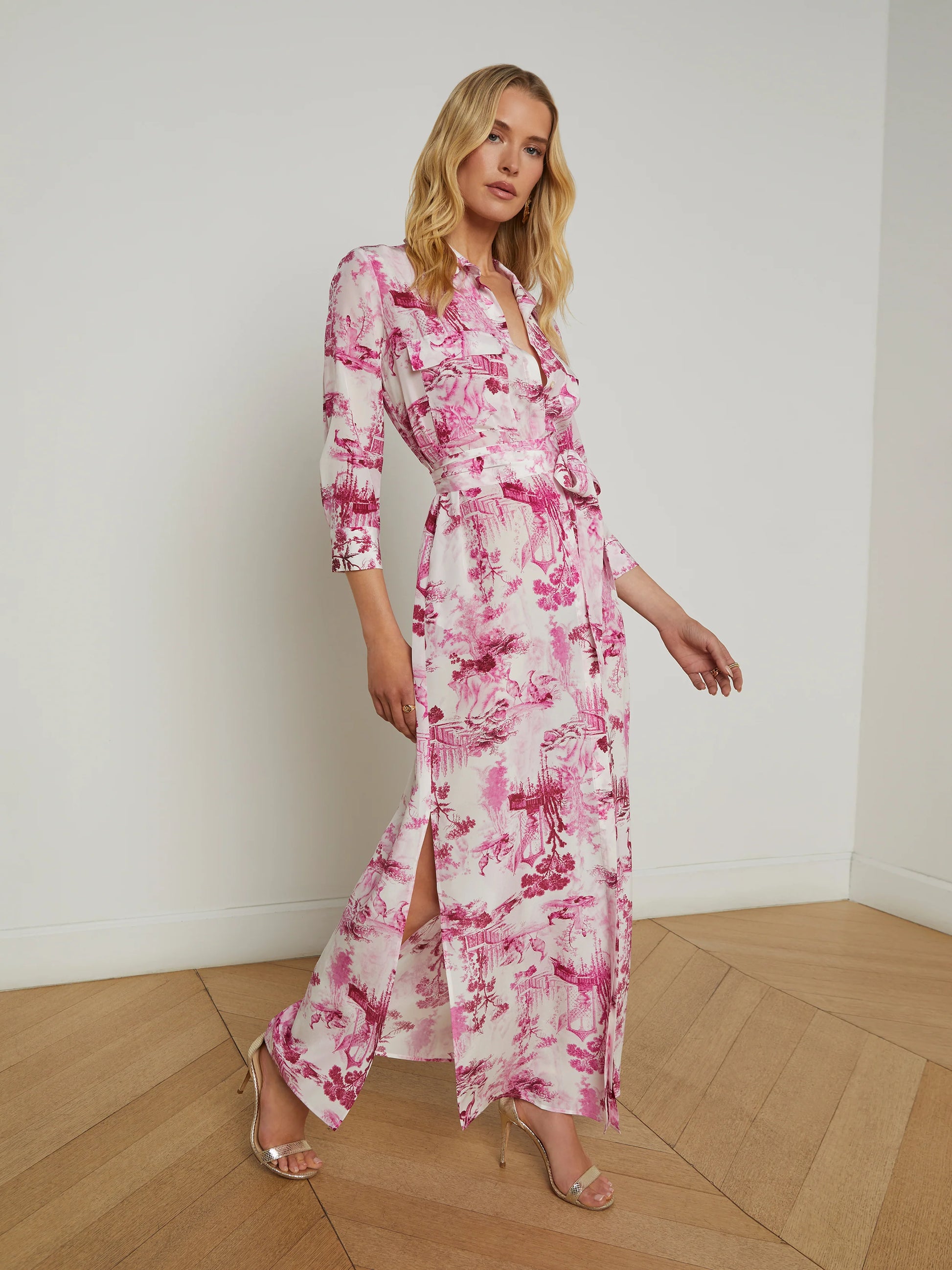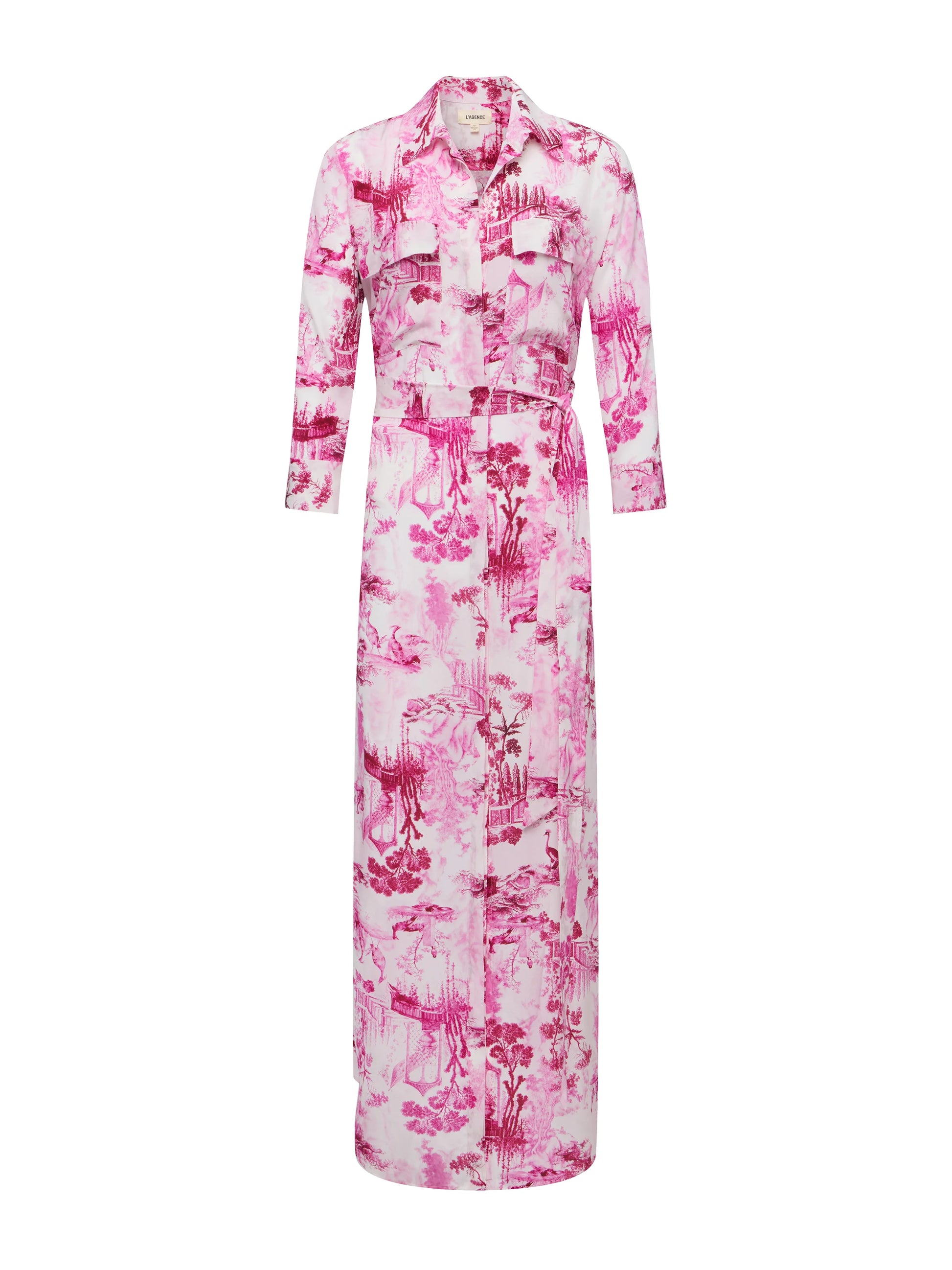 The Cameron is an all-time bestseller, worn as a dress or layered over a camisole and jeans as a duster. Now back in an electric orange and blue chain print.