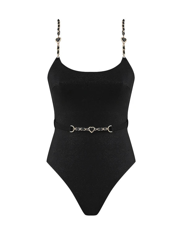 The Daylight Chain Scoop 1PC in Black from our Resort Swim 2026 Collection. A one piece featuring a scoop neckline, removable belt and a deep open back.