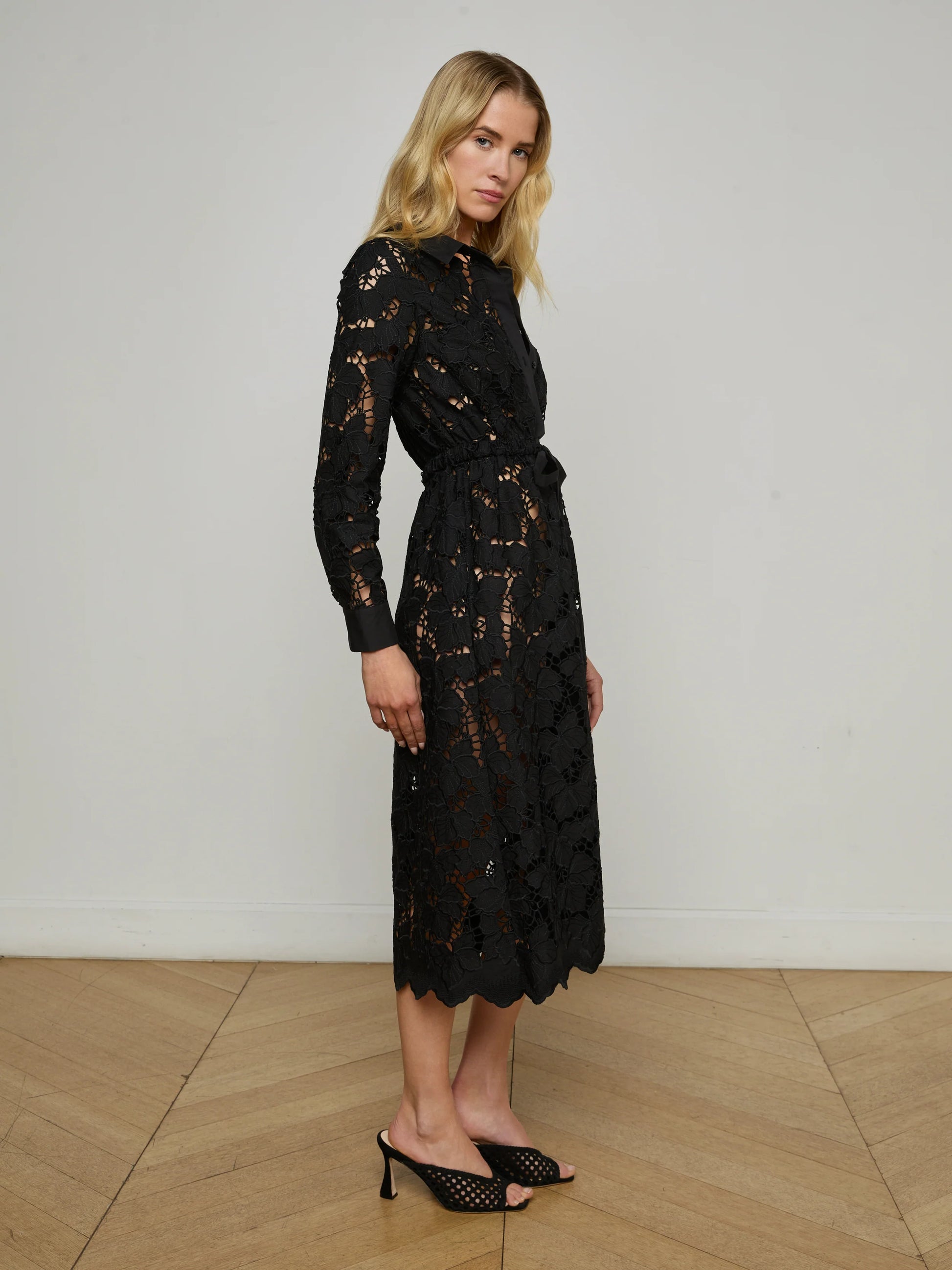 Feminine and refined, the Emilio lace shirtdress features a sophisticated silhouette with a drawstring waist for subtle shape. Layer it over one of our signature slip dresses or on its own for a more daring look.