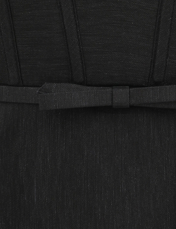 The Hypnotic Lace Trim Gown in Black from our Fall 2025 Collection, Hypnotic. A silk linen midi gown featuring a fitted bustier, shirred back and adjustable shoulder straps.