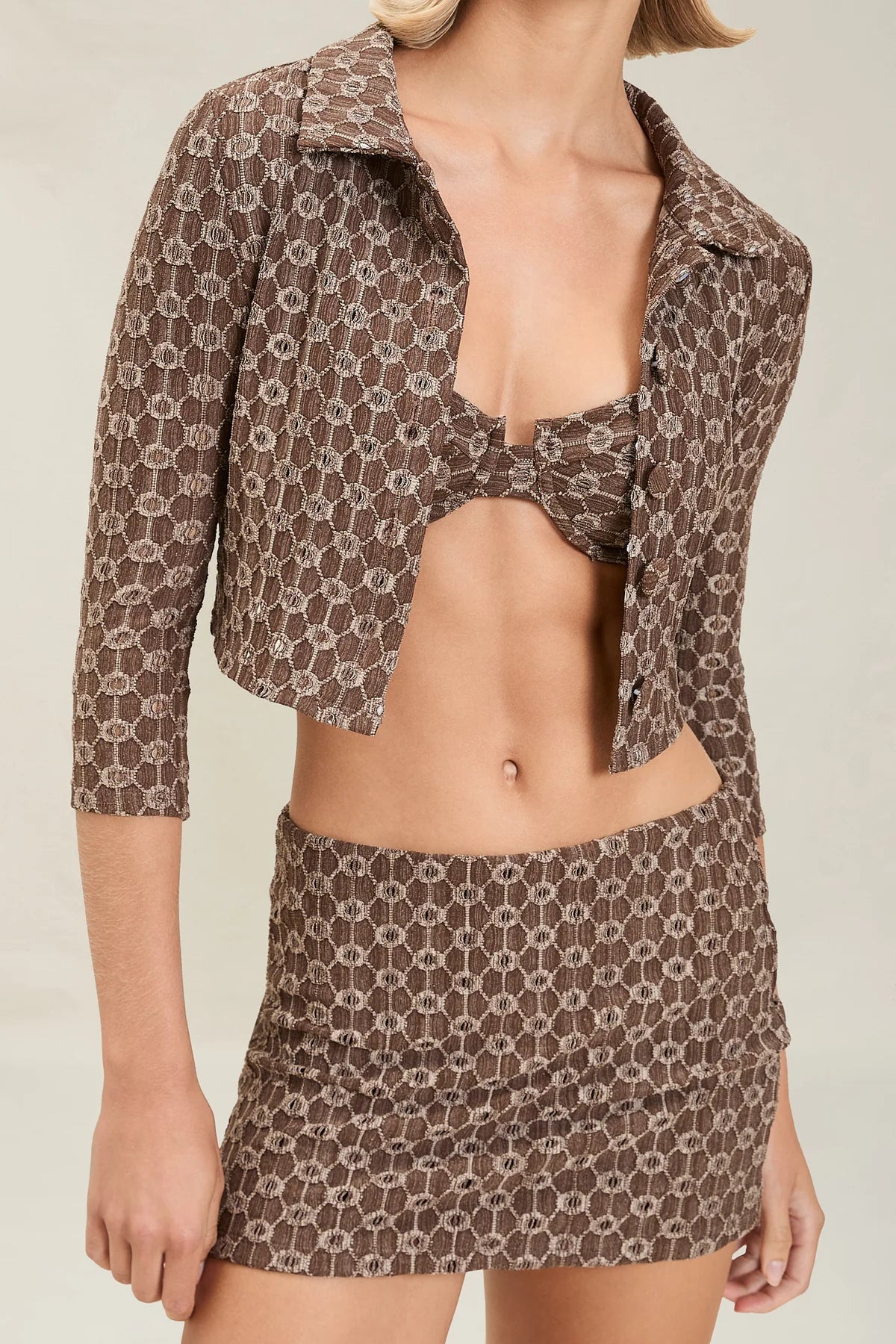 The Jay is a fitted, mini skirt. Pairs best with the Lila Jacket.