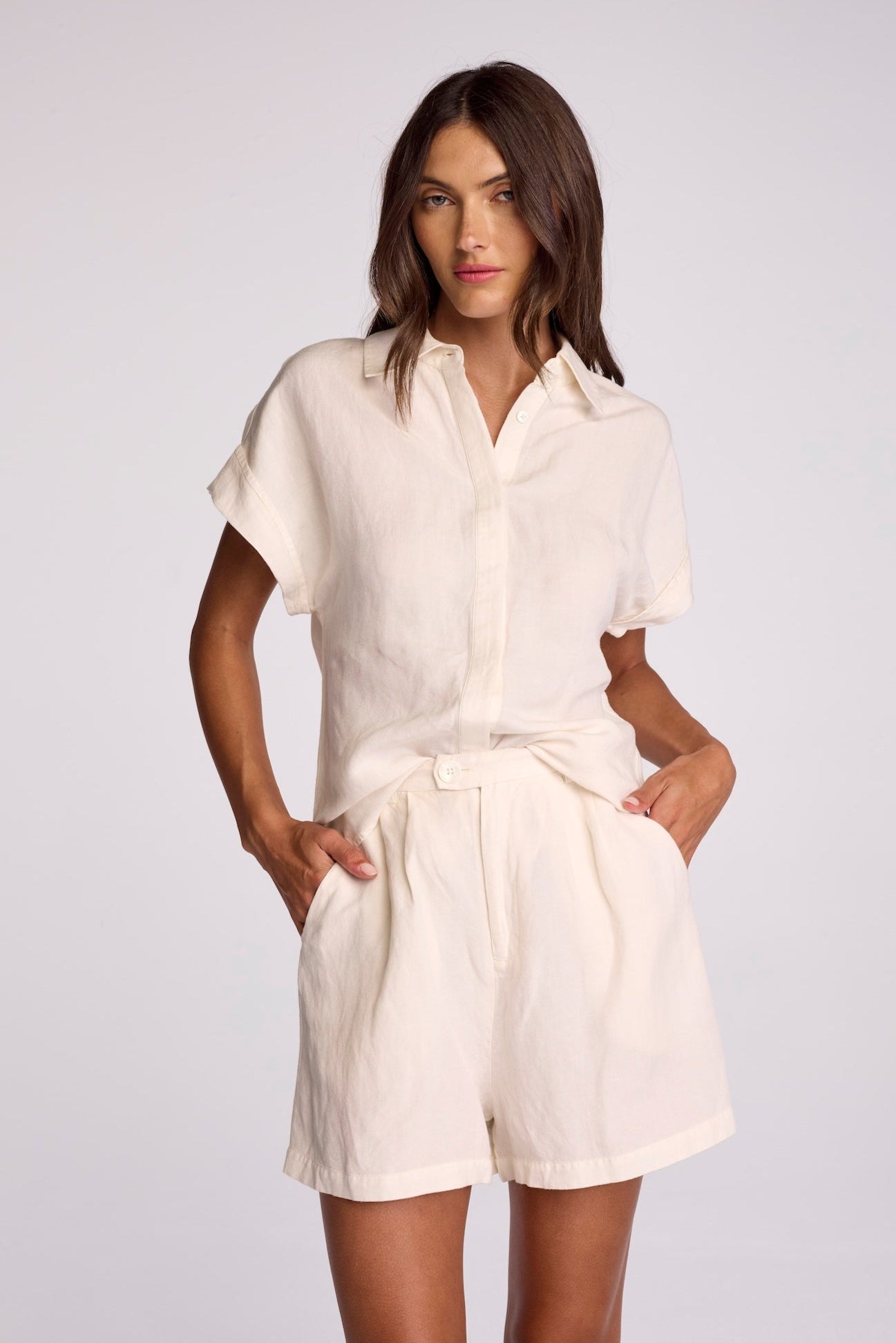 The easiest and chicest set for the warmer months. Meet the Kai Shirt, pair it with the Rachelle Short for the full set. Made in our breezy linen blend you know and love, it features a button up front and rolled sleeve.