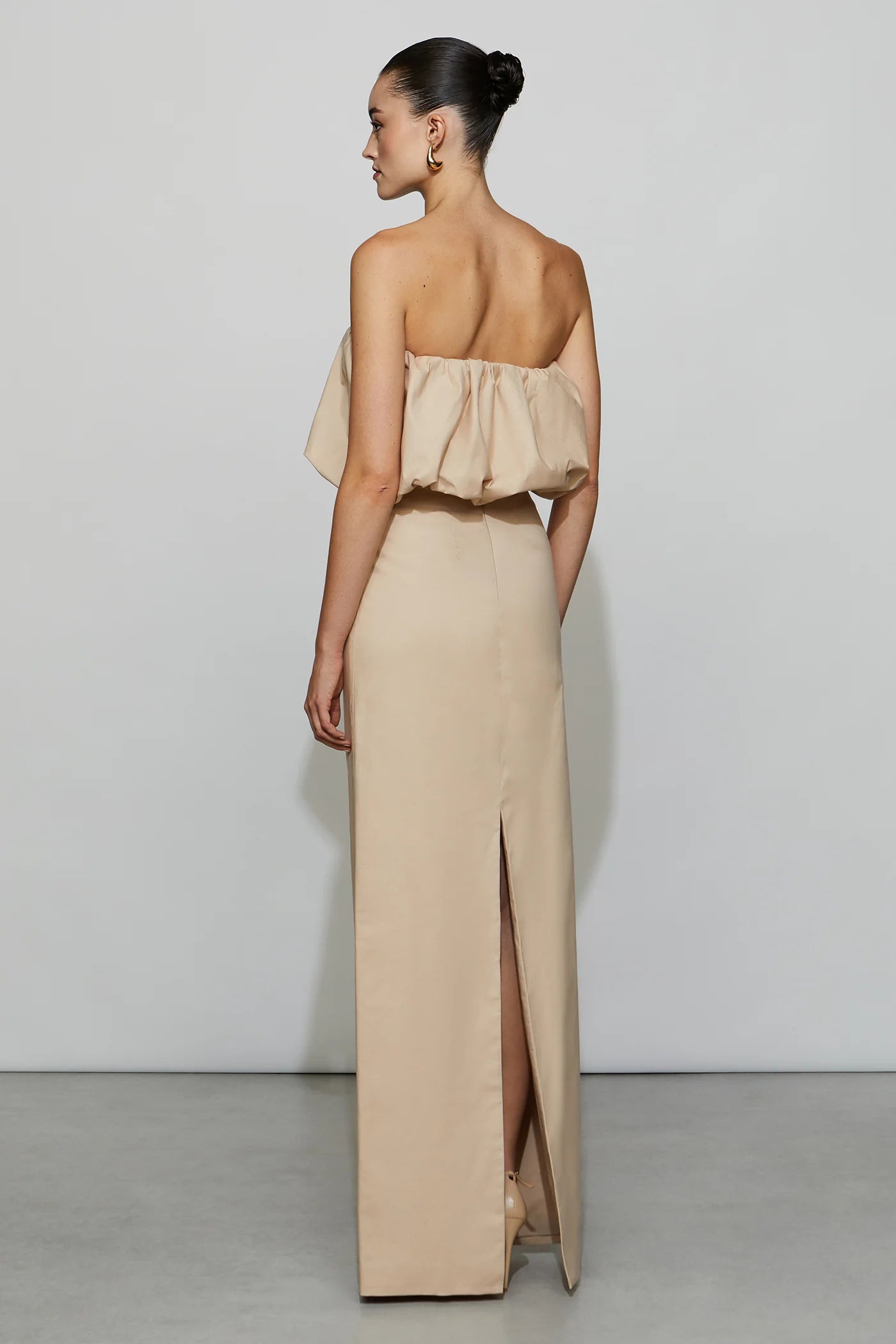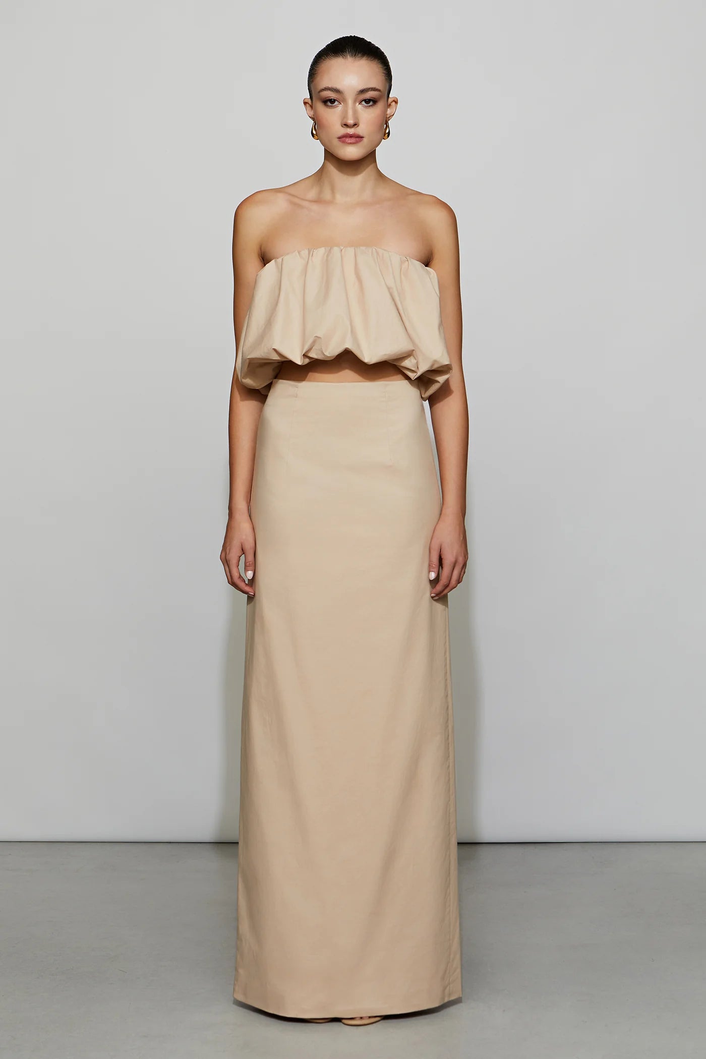 Volume meets elegance. This strapless bubbled top in crisp cotton brings effortless drama with a sculpted silhouette.