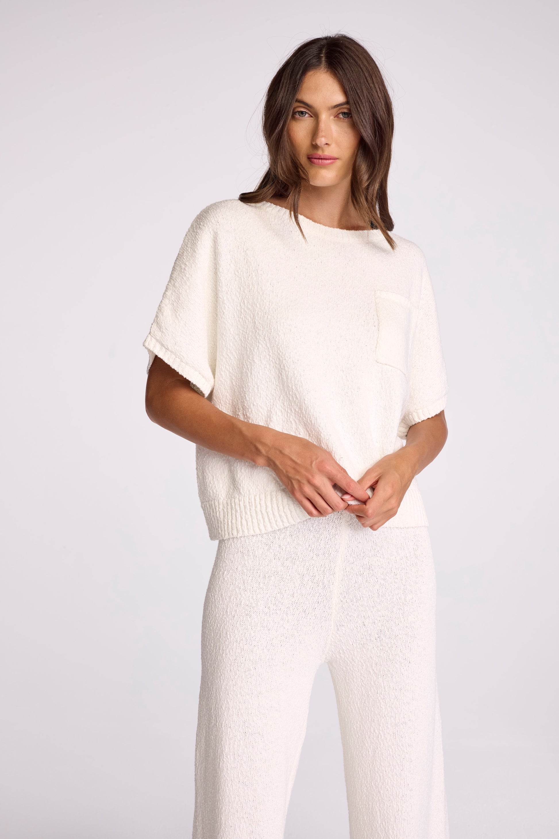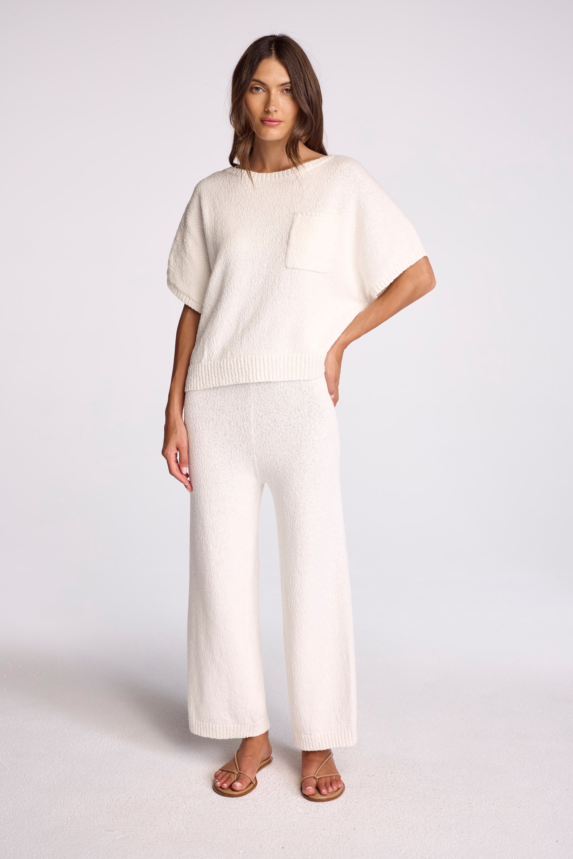 Meet the Liam Sweater. Made from our 100% cotton boucle yarn, this boxy popover features a pocket and elevated rib finishes at the neck, sleeve, and bottom opening. Perfect for pairing with our matching Liam Pants.