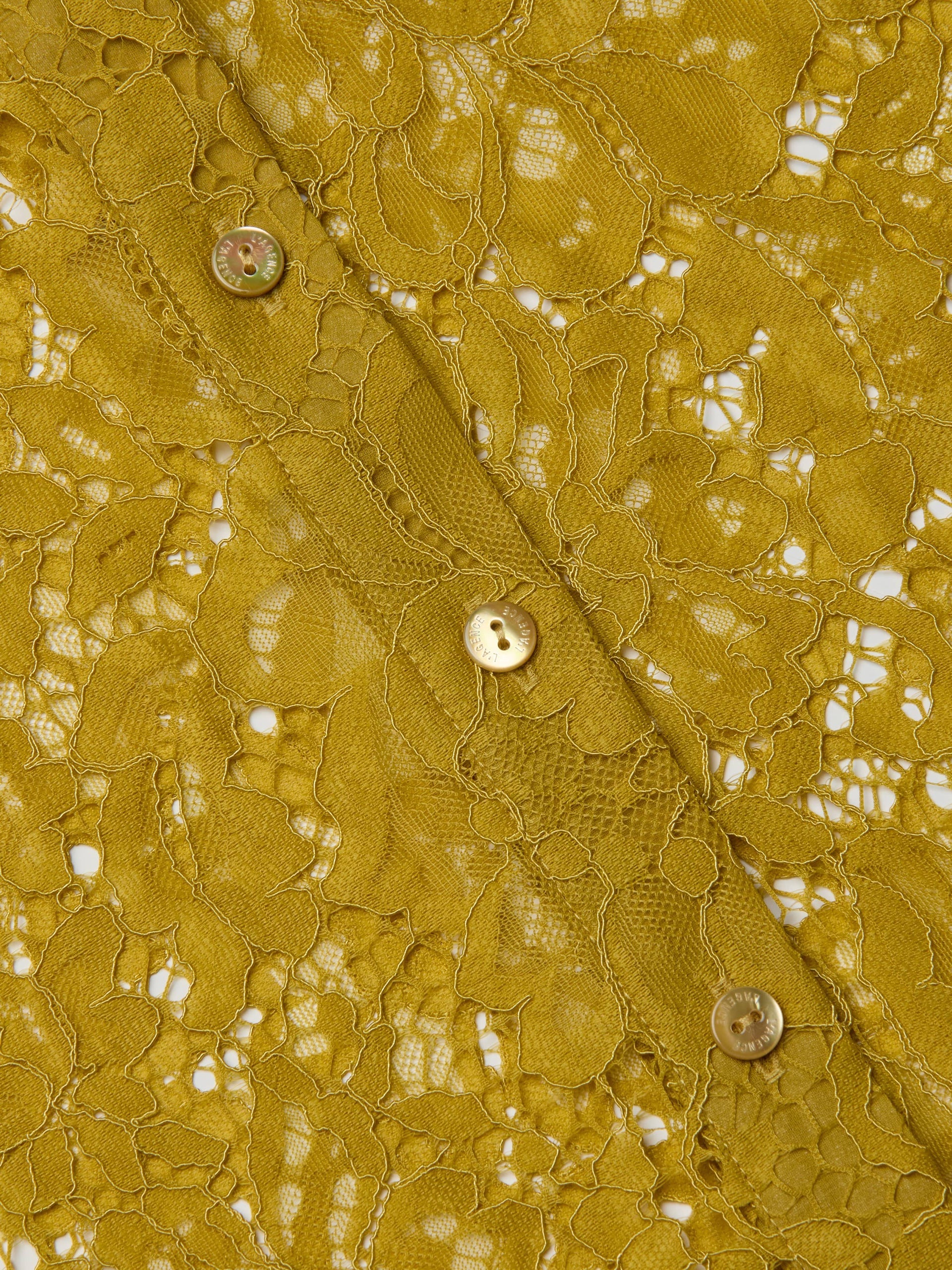 Sheer floral lace makes a romantic statement, worn alone for date night or layered over a camisole for the office. Now in mustard yellow.