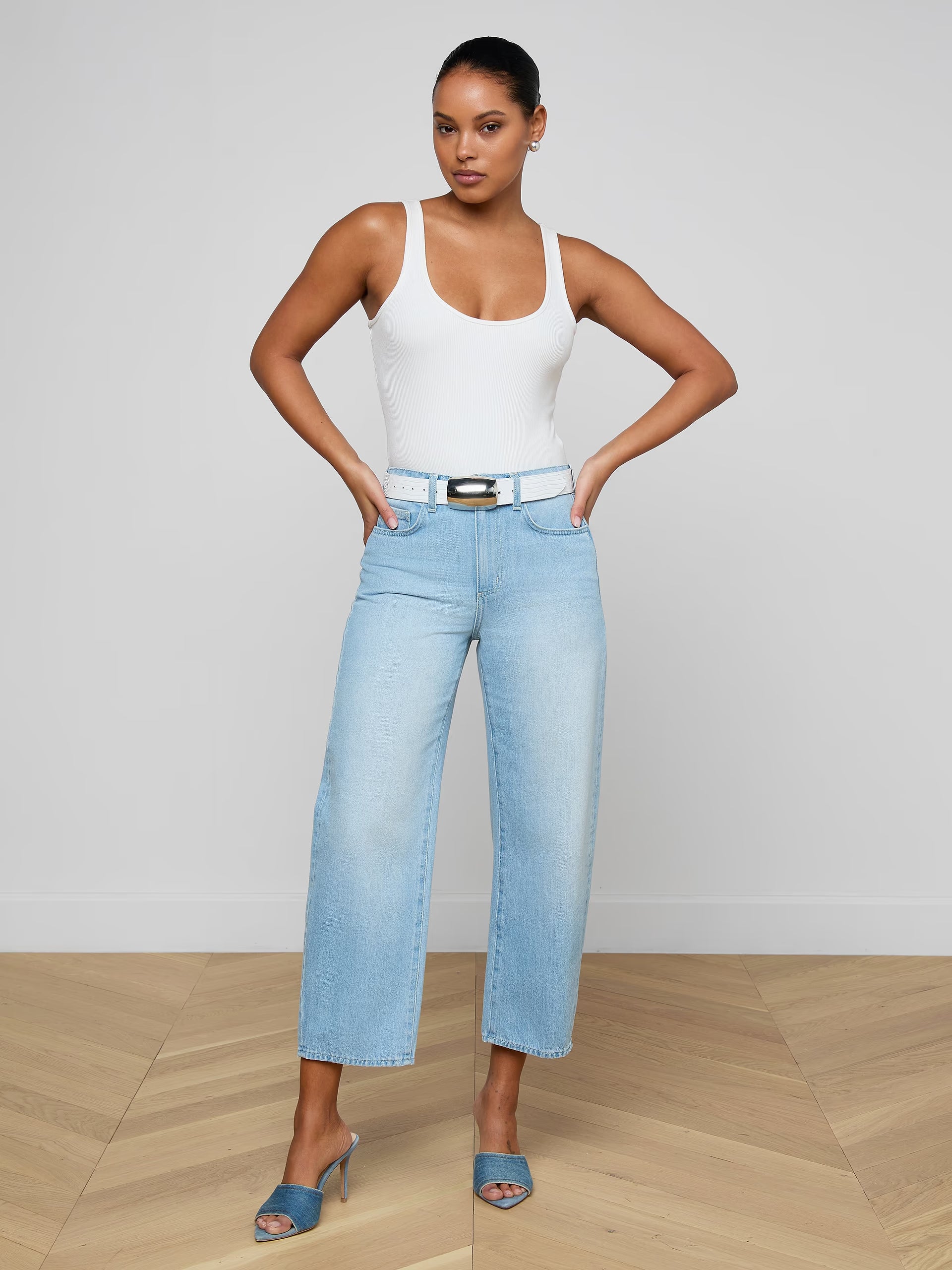 An on-trend yet timeless fit with a subtle bow leg. Both comfortable and versatile, the Mallis offers a fresh take on the wide-leg silhouette and an easy way to mix up your classic jeans-and-tee uniform. Now in a light wash.