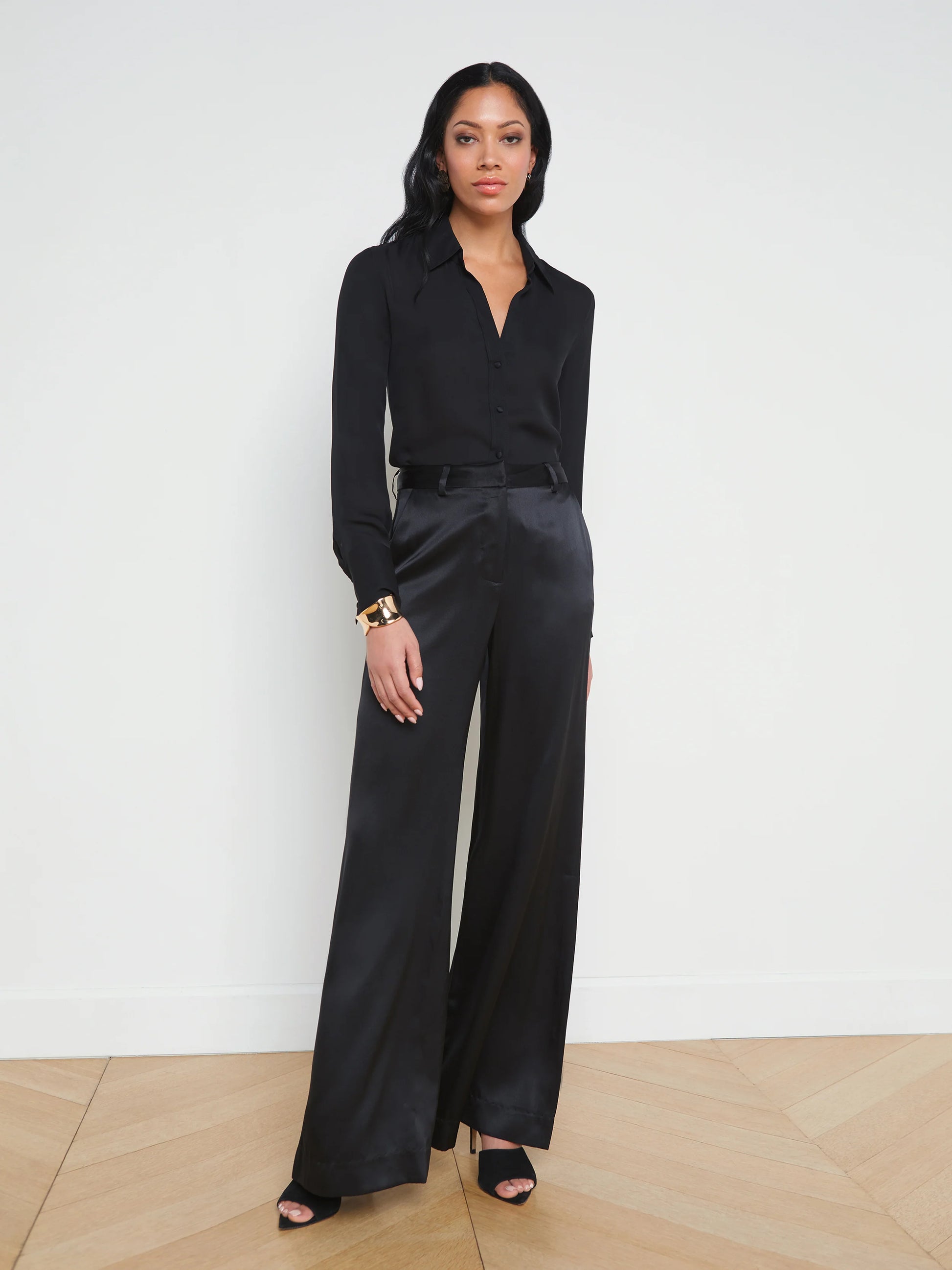 She's the supremely elegant silk pant, now in timeless black. The Pilar features a dramatic wide leg that accentuates her slim, defined waistband that includes a hidden hook-and-bar closure. Understated slit pockets blend seamlessly into the draped silhouette. Renewed each season in fresh fabrications and colorways, there's a Pilar for every occasion. Add a blouse and heel for a refined evening look.
