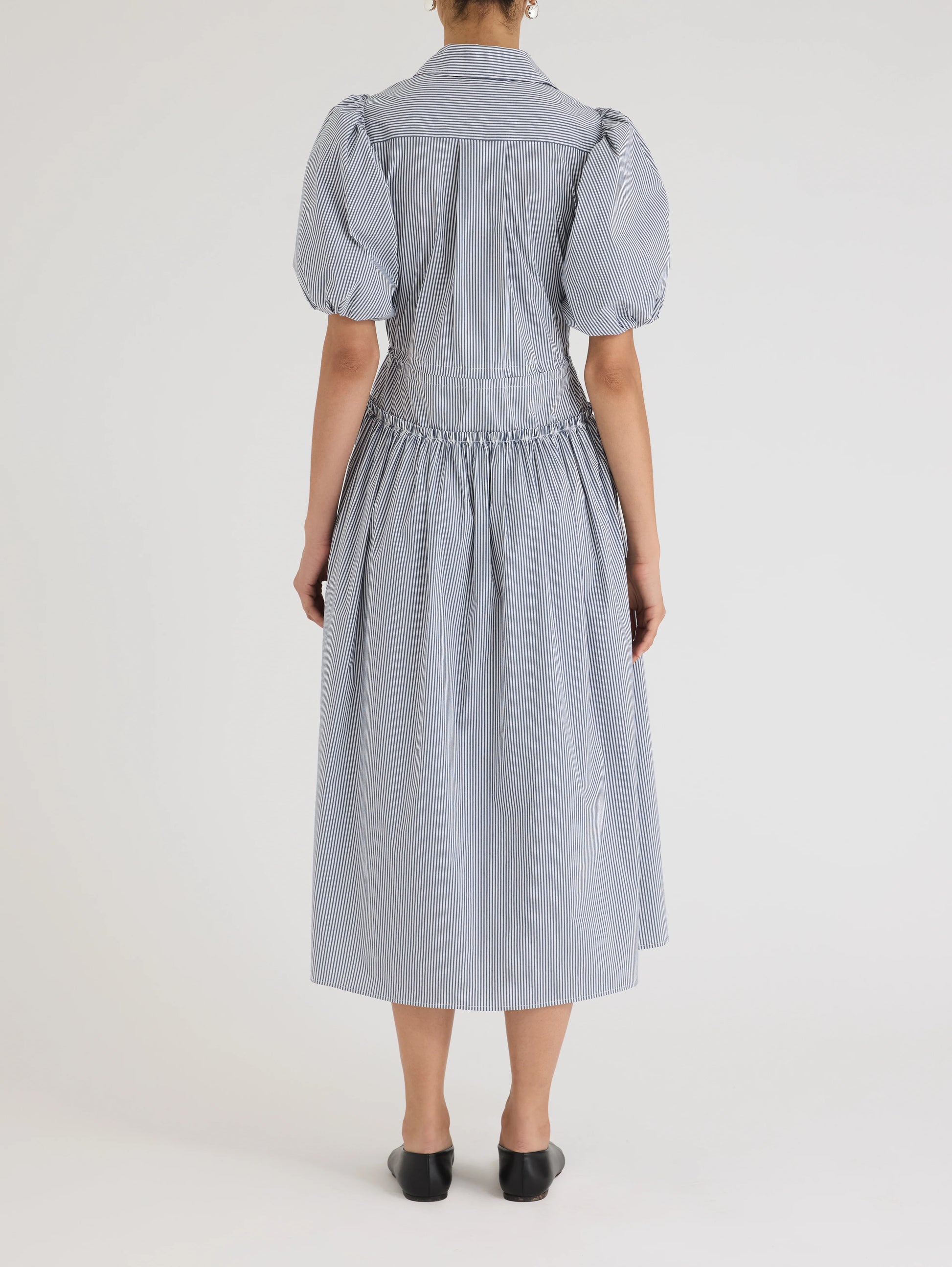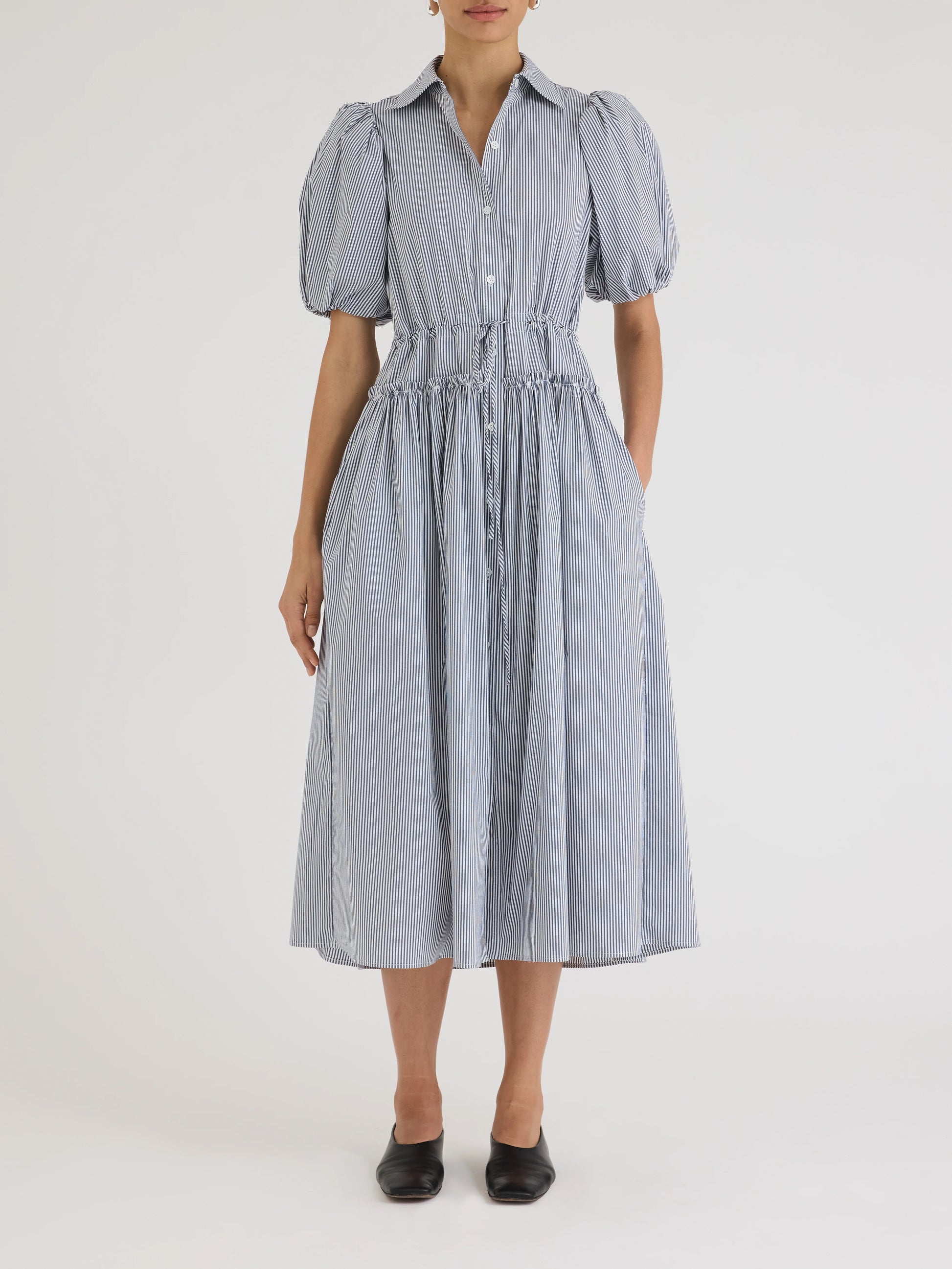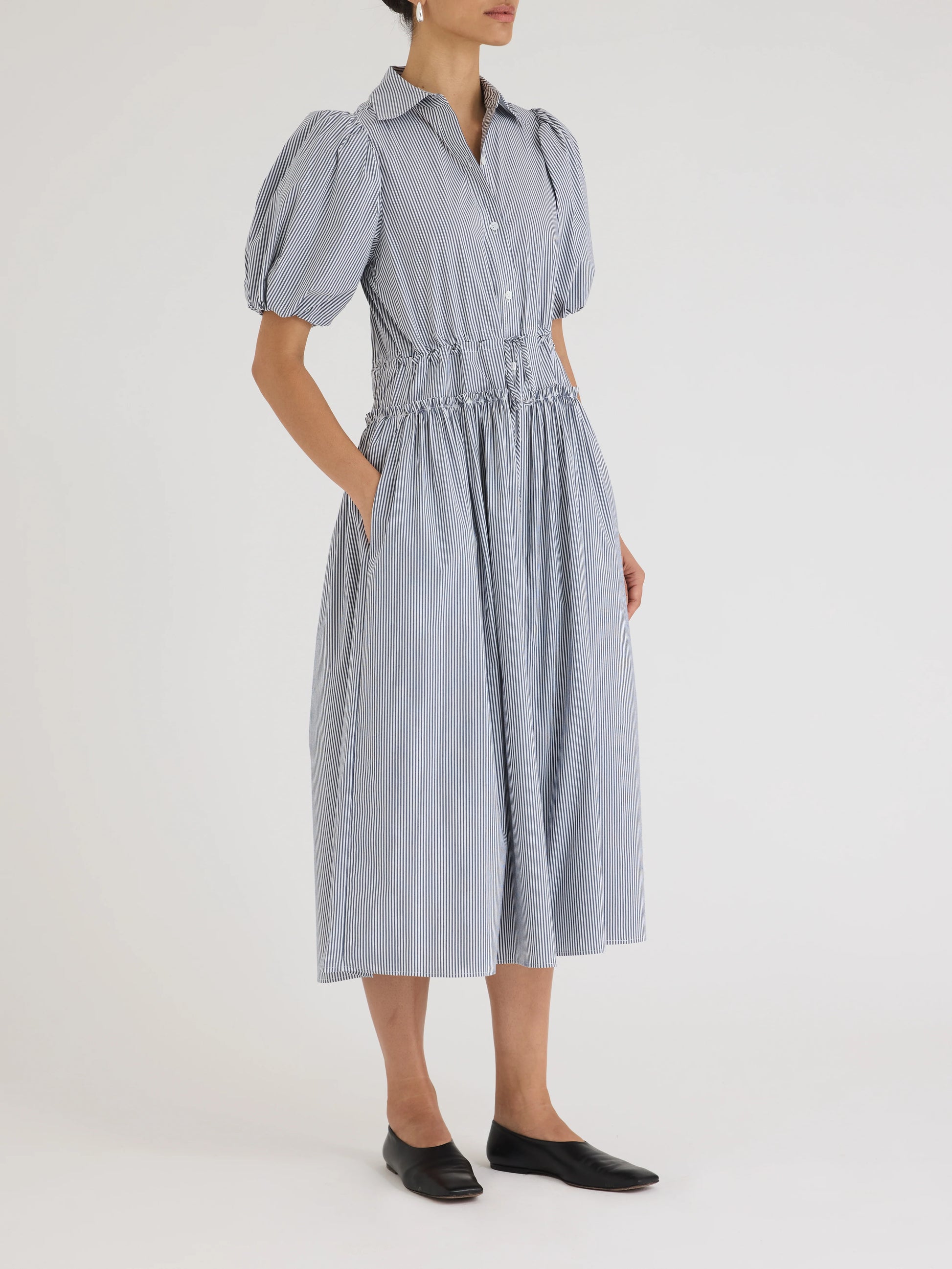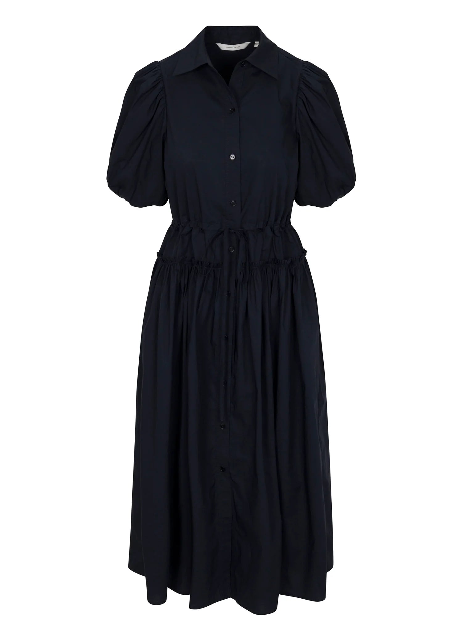 This refined puff sleeve shirt dress in a rich dark navy hue offers a perfect blend of classic style and modern charm. Crafted from pure cotton, it promises both comfort and elegance with its thoughtfully designed silhouette and feminine details.
