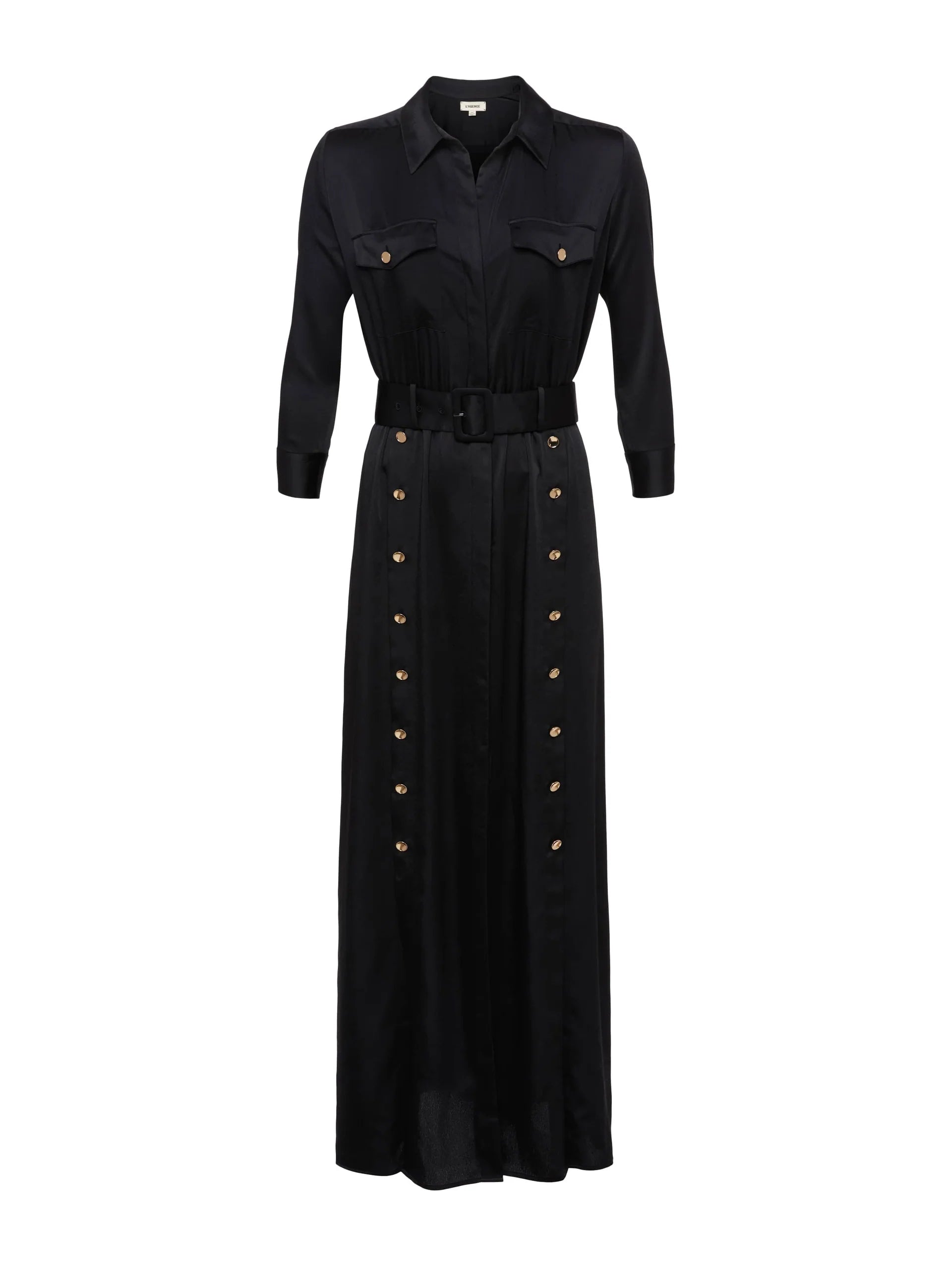 Easy, versatile, and flattering on every figure, the Uriah shirt dress is a must-have for every season. Functional buttons allow for adjustable front slits for a professional daytime look or sultry option for evening.