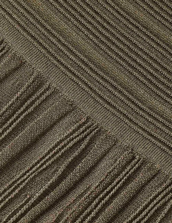 The Wanderlust Metallic Maxi Dress in Metallic Olive from our Resort Swim 2026 Collection. A knit midi dress featuring self-tie straps and a pleated skirt.