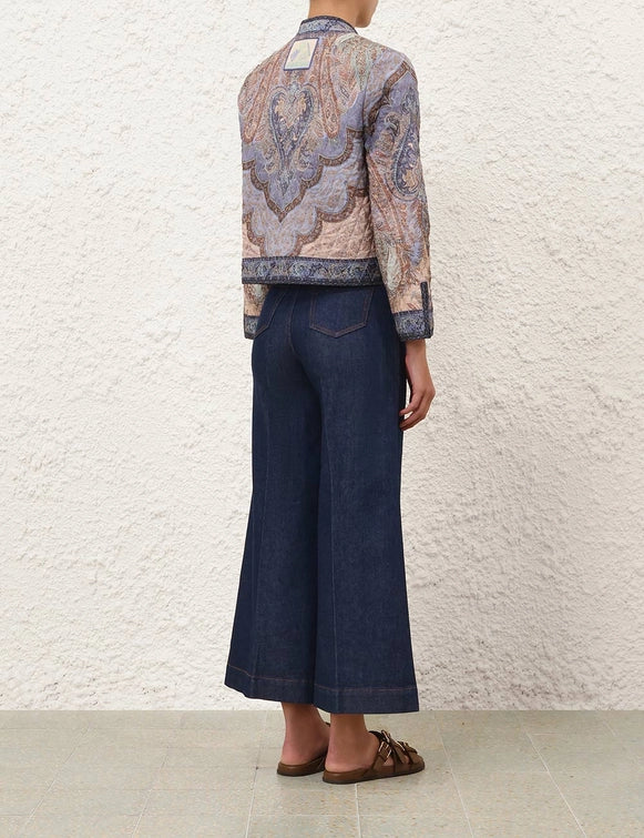 The Wanderlust Quilted Jacket in Tapestry Blue Multi from our Resort Swim 2026 Collection. A quilted jacket featuring a mandarin collar and toggle buttons down the centre front.