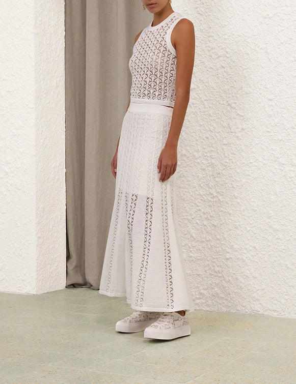 The Wylie Crop Tank Top in Ivory from our Resort Swim 2025 Collection. A knit top featuring a round neckline, cropped fit and tubular hem trim.