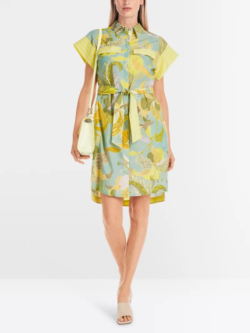 Casual, loose-fitting shirt dress in organic cotton. This dress has a straight cut and dropped shoulders. The buttoning is concealed and the pockets are integrated into the side seams. Cool contrast: the sleeves and pocket flaps have a contrasting pattern. Easy to wear and ideal for holidays and leisure wear.