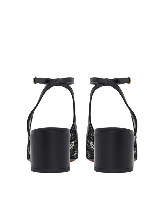 The Zimmermann Pixie Mary Jane 50 in Black from our Resort 2025 Collection, Crush. A lace Mary Jane shoe featuring jewel flower detailing at the front and an ankle strap.